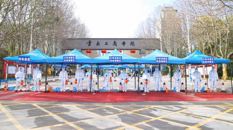 师生党员穿上红马甲,亮出党员身份,开展学院围墙管控、防疫引导等工作。除电子设备全天候监控外,围墙管控区域从8点到24点,都有党员同志值守,严防私自翻越围墙等现象发生;深入食堂、宿舍、超市等区域,提醒师生佩戴口罩、不聚集、不扎堆,引导师生错峰就餐等,对违反疫情防控规定的行为及时劝阻。