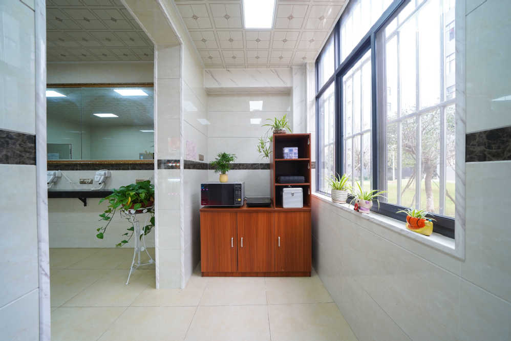 每一栋公寓中,都有10部蒂森克虏伯电梯,每层配备了环境安静、舒适的自习室,冰箱、洗衣机、微波炉、独立卫浴、穿衣镜、吹风机、售货机等配套一应俱全。
