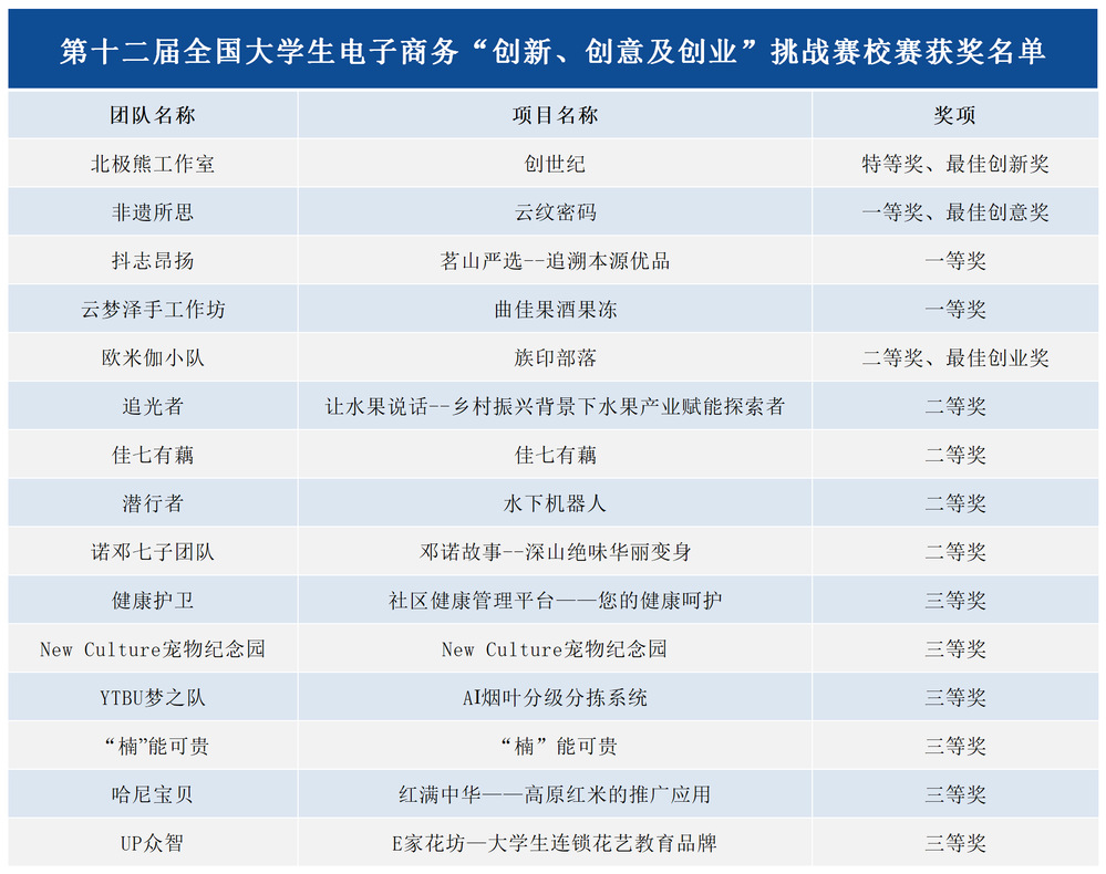 5月8日,ky开元集团第十二届全国大学生电子商务“创新、创意及创业”挑战赛(以下简称“三创赛”)校级选拔赛圆满落幕。