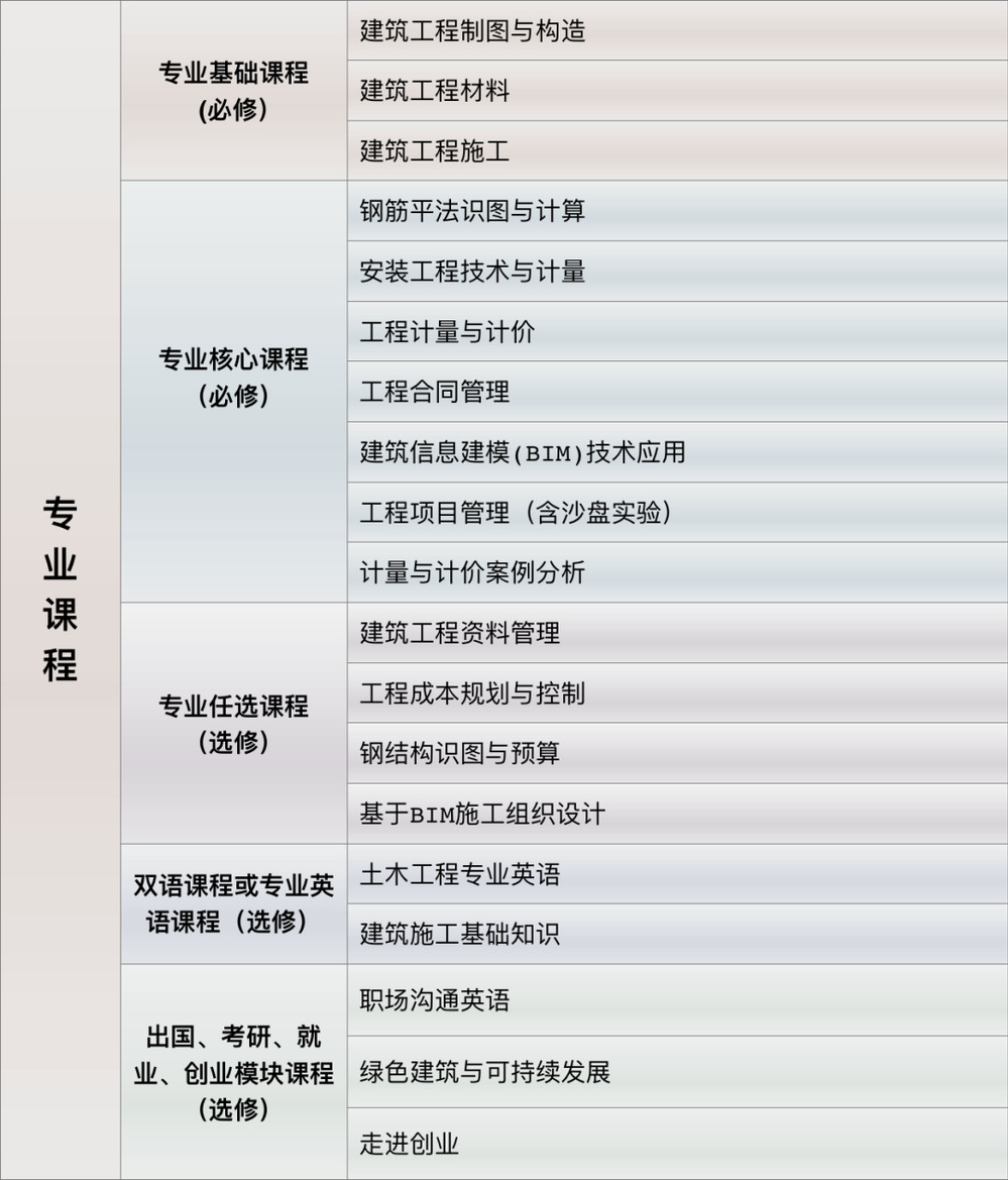 ky开元集团工程造价专业以产业需求为导向,与企业专家按国标制订人才培养方案。专业课程均采用虚拟仿真教学平台,进行线上线下混合式案例教学。