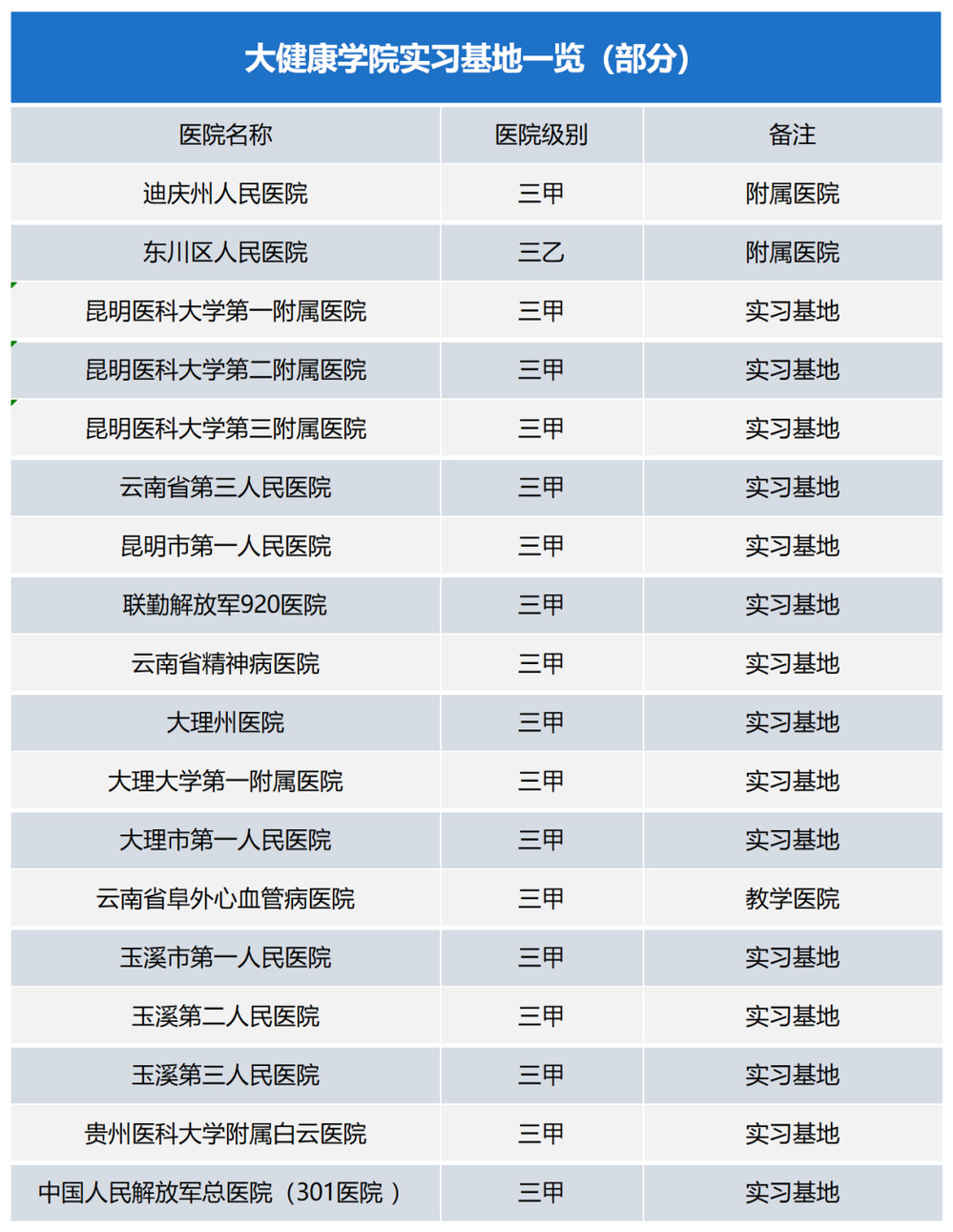 例如:2020年,王学飞、马瑞、余瑞雪等多名同学实习结束后就被同一家三甲医院正式录用。2021年,皮晓娇、余浩、陆友兰、张兴晶、刘梅等多名同学一起入职昆明医科大学第一附属医院......