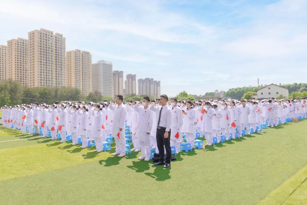 大健康学院副系主任刘朋勃带领全体师生宣誓。同学们铿锵有力的声音响彻操场,誓要发扬南丁格尔精神,积极履行实习职责。