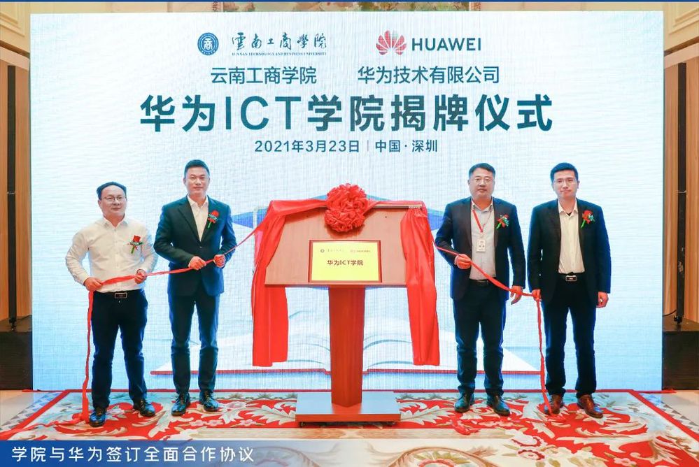 其中,自2014年开始,学校就与华为共建了“华为ICT学院”,就人才培养体系的建设进行了积极探索,在双方的共同努力下,学校在2019年、2020年、2021年都被华为授予“优秀华为ICT学院奖”,这也是云南省唯一连续三年获得“优秀华为ICT学院奖”的高校。同时,学校也取得了华为生态企业人才输出贡献度云南省高校第一、华为体系资格证书取证率云南省高校第一的成果。