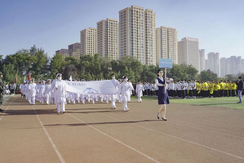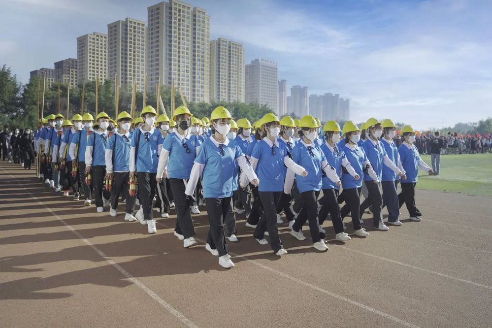 随后,二级学院表演方阵依次走入会场中心,用精彩的表演将全场的热情引燃。
