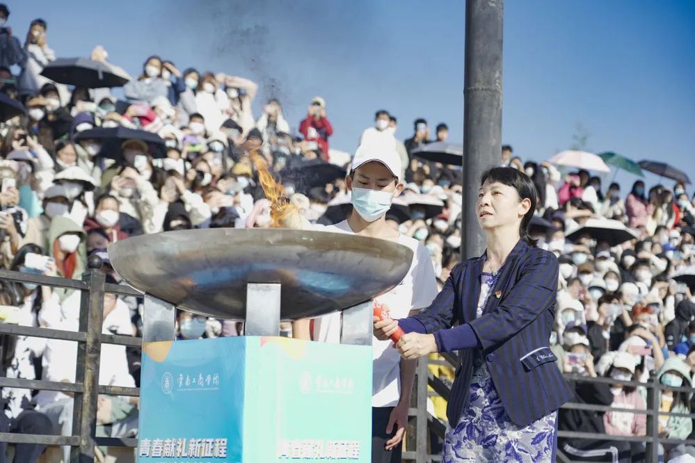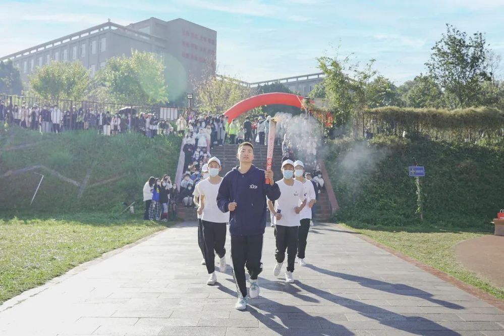 象征着体育精神的奥林匹克之火,跟随火炬手,穿越整个校园。学校党委书记李国琼接过最后一棒,万众瞩目中点燃了主火炬台。熊熊火焰在燃烧,它不仅代表着更快、更高、更强、更团结的奥林匹克格言,更传递着和平与友谊,象征着携手未来的美好期许。
