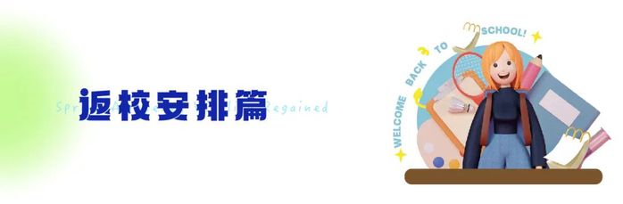 返校途中请做好疫情防护。返校后严格执行学校防疫政策,学校将根据疫情形势和防控政策,及时调整措施,如有新的变化,将另行通知。