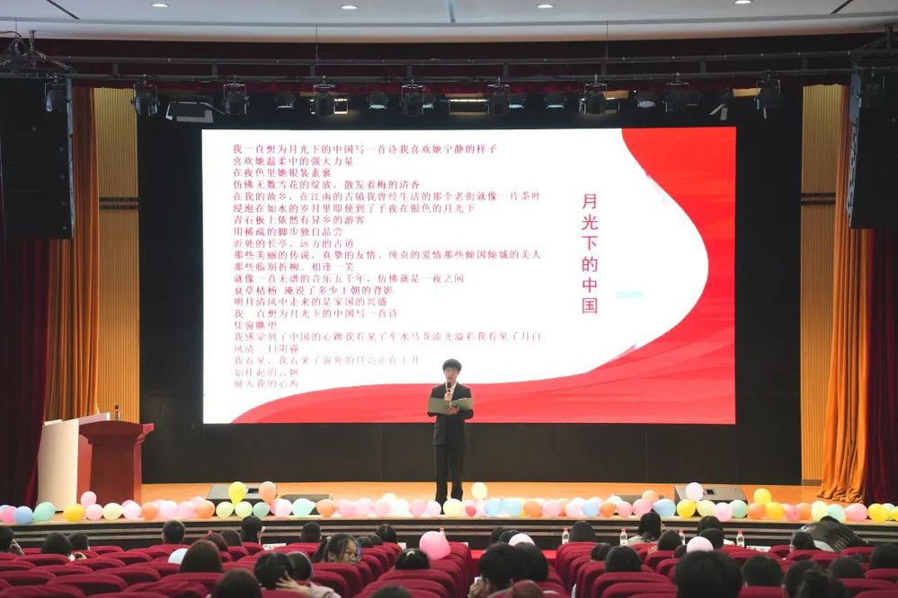 比赛开始,播音组选手带来《月光下的中国》朗诵, 参赛者用优美的嗓音,展现了月光下一个宁静、温柔、祥和、美丽的中国,表达了深深的赤子之情、对祖国深情的祝福。