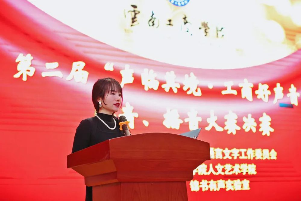 黄淇处长致开场词,她谈到普通话是我们国家通用语言,是中华民族独有的语言标志和宝贵财富,是我们整个民族智慧的结晶,它曾经为创造和传播中华文明和灿烂文化做出了不可磨灭的贡献。“我校始终对于推广应用普通话给予高度重视,未来我校语言文字工作将在ky开元集团语言文字工作委员会的领导下,持续加强语言文字和中华经典的研究阐释、教育传承及创新传播,更好地发挥我校立德树人的办学功能!预祝第二届“声临其境·工商好声音”配音、播音大赛决赛成功举办!”