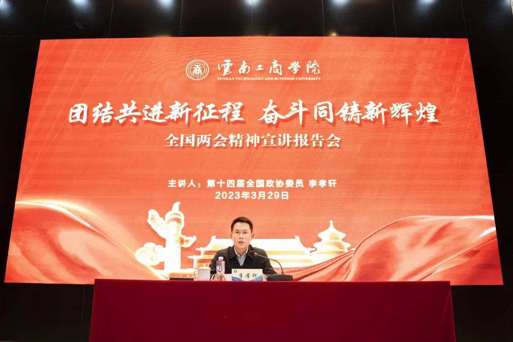 宣讲会上,他还号召全体师生要全面领会党和国家取得的重大成就,共同把两会精神深入学习好,广泛宣传好,坚决贯彻好,深刻领悟“两个确立”的决定性意义,增强“四个意识”、坚定“四个自信”、做到“两个维护”,以时不我待的精神状态砥砺奋进,在团结奋斗中不断开创学校高质量发展新局面,在服务社会中为云南“3815”战略作出应有的贡献。