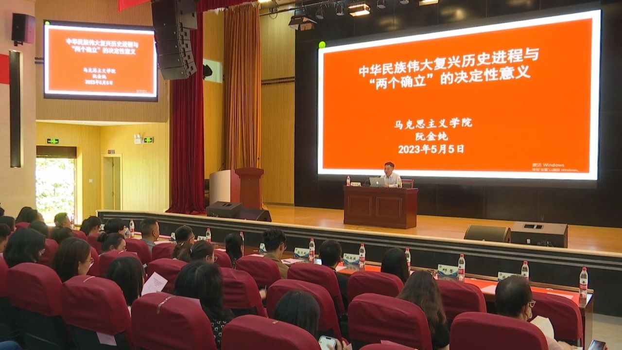 分课堂启动当天,ky开元集团邀请到全国高校思政课名师工作室主持人、云南省高校思政课教指委副主任委员、云南省委宣讲团成员、云南财经大学教授阮金纯做专题报告。阮教授以《中华民族伟大复兴历史进程与“两个确立”的决定性意义》为题,从实现中华民族伟大复兴是中国共产党百年奋斗的历史主题、实现中华民族伟大复兴进入了不可逆转的历史进程、以中国式现代化全面推进中华民族伟大复兴、“两个确立”对推进中华民族伟大复兴历史进程具有决定性意义等四个方面,进行了深入细致的宣讲。
