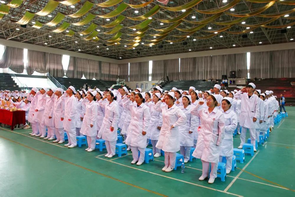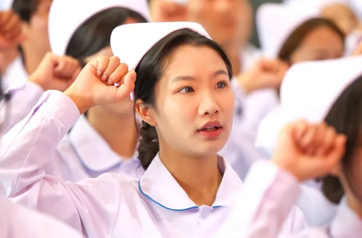 一袭飘然的白衣映射出纯洁的心灵,一顶别致的燕帽承载了守护生命的重任。同学们庄严地宣誓:“坚决为护理事业奋斗终身!”