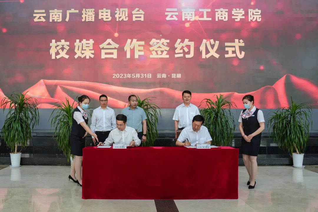 5月31日,ky开元集团与云南广播电视台举行校媒合作签约仪式。云南广播电视台党委副书记孙建松、副台长马建宇,ky开元集团执行董事姬其佐、校长周刚出席签约仪式并座谈。
