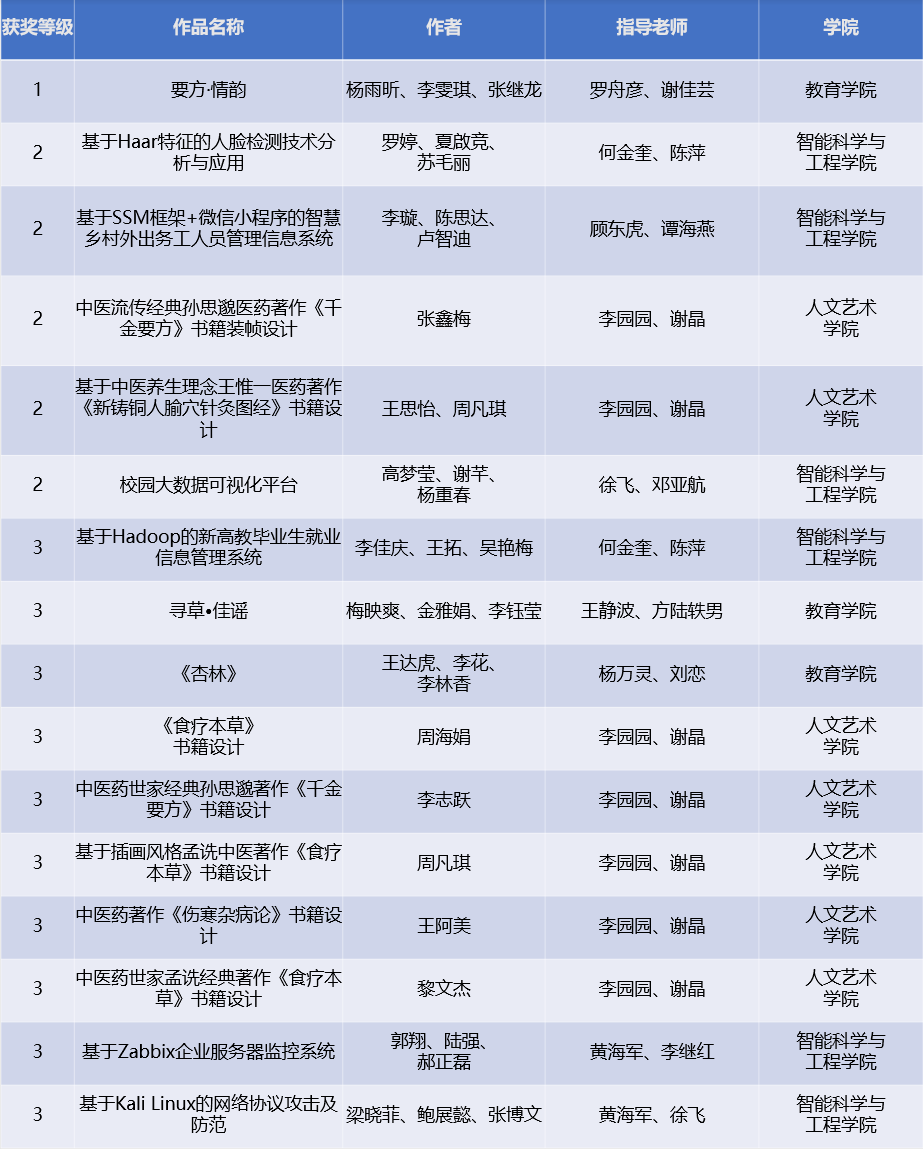 其中,“要方·情韵”、“基于SSM框架+微信小程序的智慧乡村外出务工人员管理信息系统”2项作品获推荐即将进军国赛。