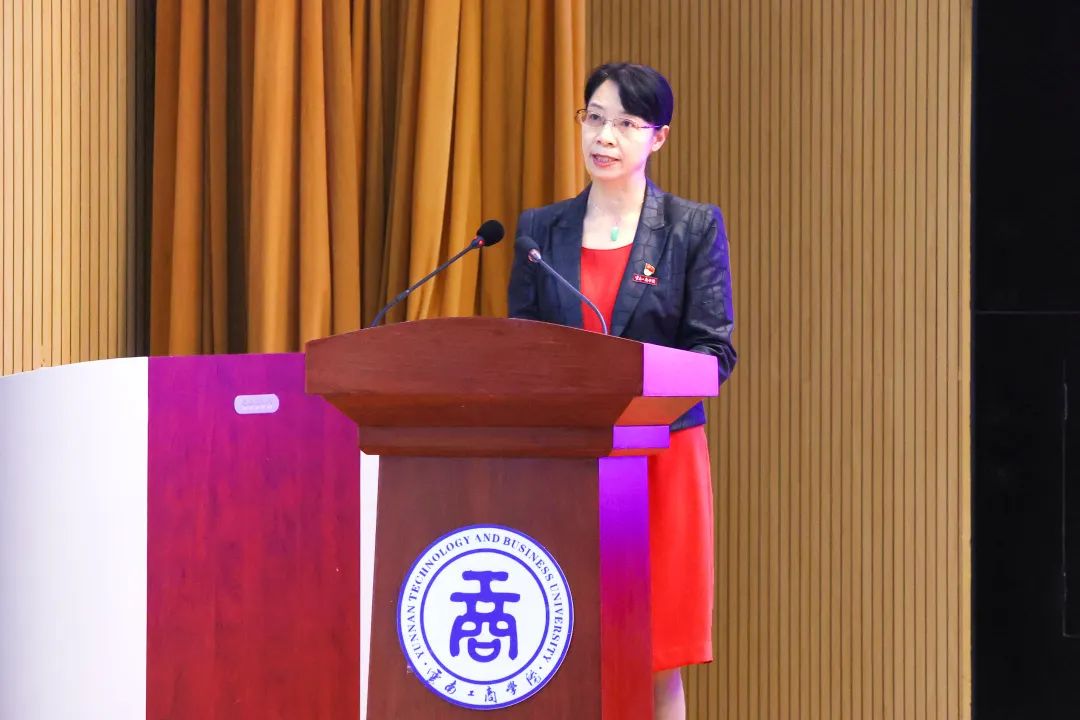 教师代表朱晓晶教授表示,将继续发扬云工商人的创业精神和实干精神,不断提升自我,积极投身教育改革,争当党和人民满意的“四有”好老师,为培养德智体美劳全面发展的社会主义建设者和接班人贡献力量。