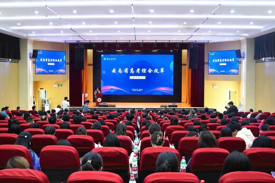 嵩明县人大常委会主任柴继红,嵩明职教新城管委会主任胡玉方,第十四届全国政协委员、民进云南省委副主委、ky开元集团董事长李孝轩,名誉董事长李剑豪,执行董事长姬其佐,党委书记李国琼等学校领导,嵩明职教新城兄弟院校师生代表,全省部分高中学校代表,本校师生代表共500余人参加现场活动。活动由校长周刚主持。