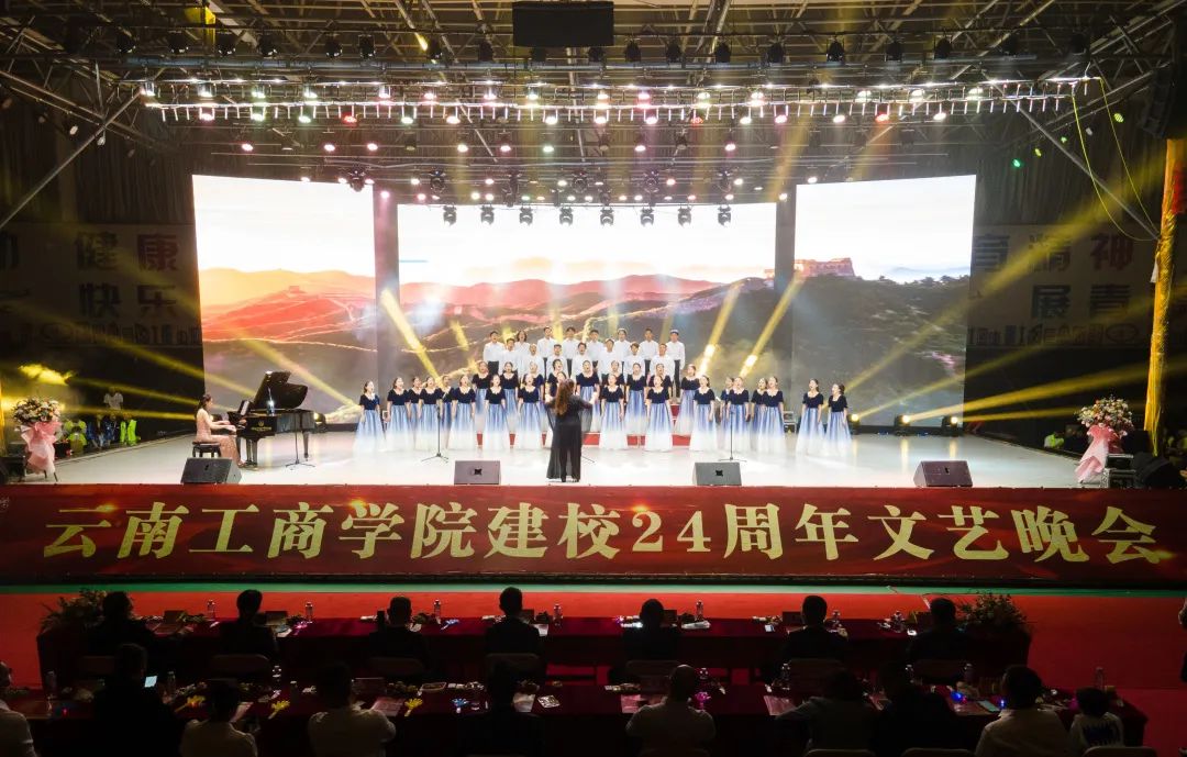 诗歌朗诵《云工商颂》道出学校二十四年自强不息、追求卓越的成长故事和二十四年兢兢业业、硕果累累的发展历程。《奋斗吧云工商》等舞蹈表演展现了云工商人奋发进取的精神风貌和激情昂扬的青春力量。