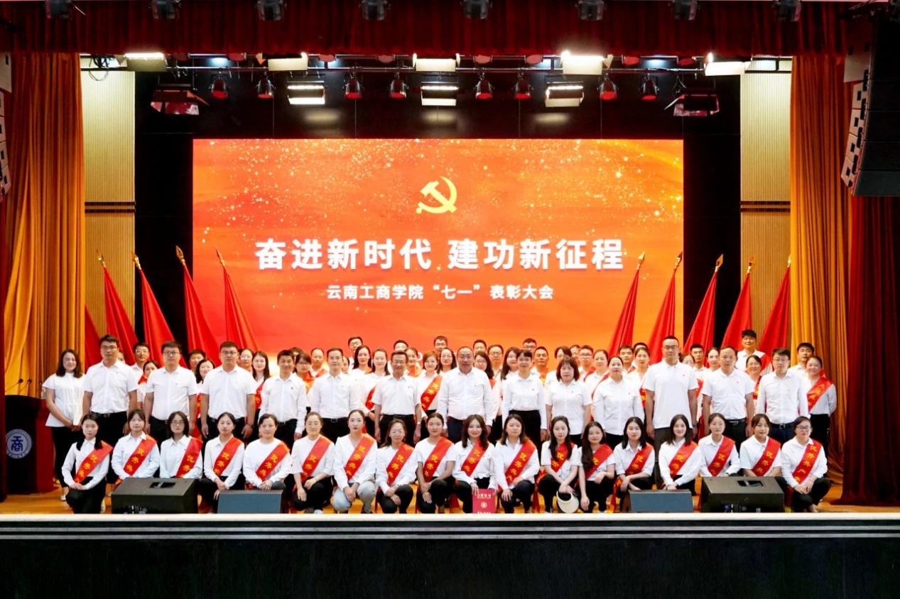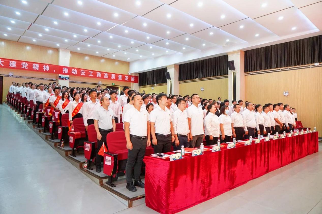 大会在雄壮的国歌声中拉开帷幕。李国琼代表学校党委向受表彰的先进集体和先进个人表示热烈祝贺,向全校共产党员致以崇高敬意和节日问候,向新加入党组织的预备党员表示诚挚欢迎。李国琼指出,近年来,我们持续推动党的建设与学校事业发展深度融合,以高质量党建引领推动学校高质量发展,特色鲜明、国内知名的应用型大学建设迈出新步伐,学校办学水平不断提高,综合实力不断增强,各项事业呈现出蓬勃向上的良好发展势头,演绎了“一融双高”的生动实践。广大共产党员在本科合格评估的艰难岁月中,在疫情防控的生命守护中,在服务学生发展的教学、科研、后勤保障等一线工作中,奋勇争先、率先垂范,让党旗高高飘扬,为学校建设发展作出了积极贡献。要求全体党员以“云工商建校24周年——高质量发展迈向新征程”为新的起点,一要以党员身份为荣,追逐理想之光;二要以党性修养为根,涵养信仰之魂;三要以党务工作为范,培塑实干之风,坚持党的教育方针,落实立德树人根本任务,为党育人、为国育才,在促进民族团结进步、服务区域经济社会发展和建设教育强国新征程中作出云工商新的更大贡献。