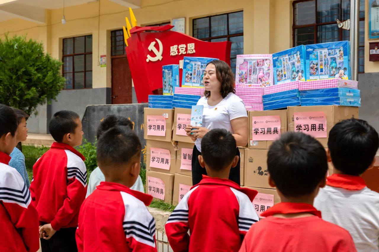 师生们首先来到当地的皎平渡镇乐华小学,为他们送上了来自云工商的礼物。这一次,大家为这里的小朋友们带来98份学习用品,里面有文具盒、笔记本、笔、削笔器、水杯等大家日常用到的文具。