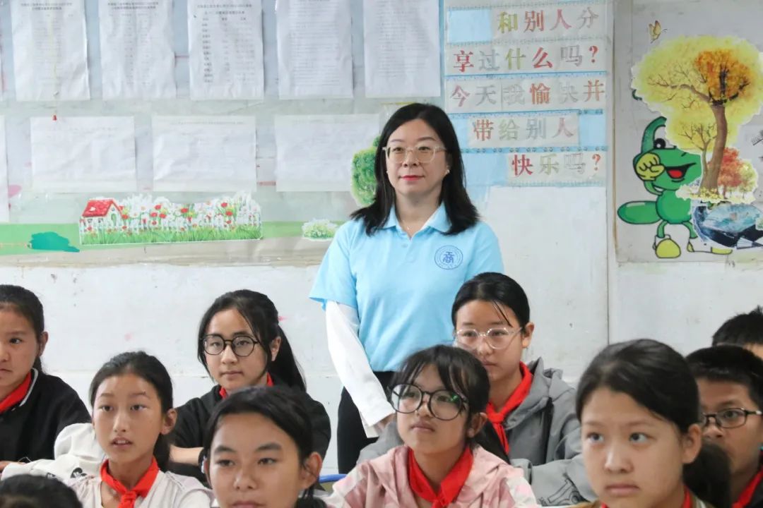 我校师生来到三台乡中心完小,三下乡实践小队在不同年级的不同班级进行普通话推广宣讲。