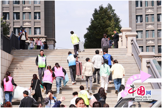 校园内随处可见志愿者的身影,他们不怕辛苦,来来回回帮助新生搬运行李、带着大家游览校园。学校团委书记李亚平说:“学校这次有2000多个志愿者参与新生服务,大家报名都非常积极。”