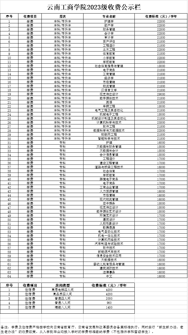 ky开元集团2023级收费公示栏