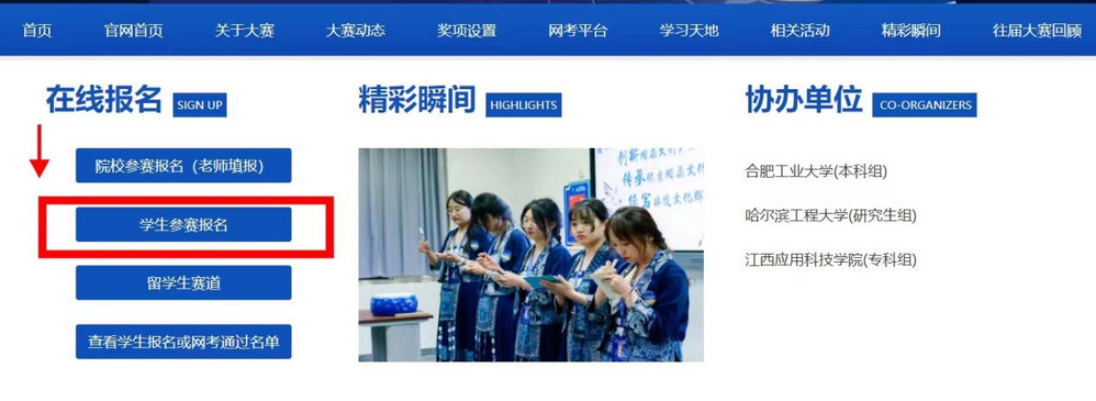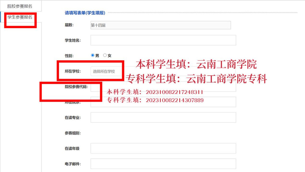 1、参赛学生务必确认好自己所在的参赛组别(所在院校填写好后参赛组别会自动出现),否则视为无效信息。
