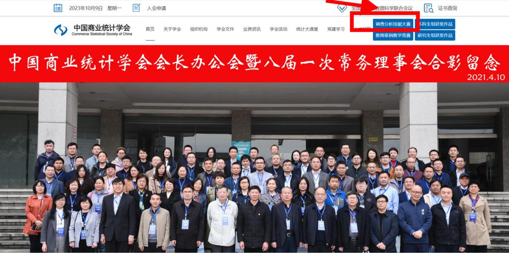 (一)进入中国商业统计学会官网:http://www.china-cssc.org/,点击“调查分析技能大赛”,进入大赛专题页面。