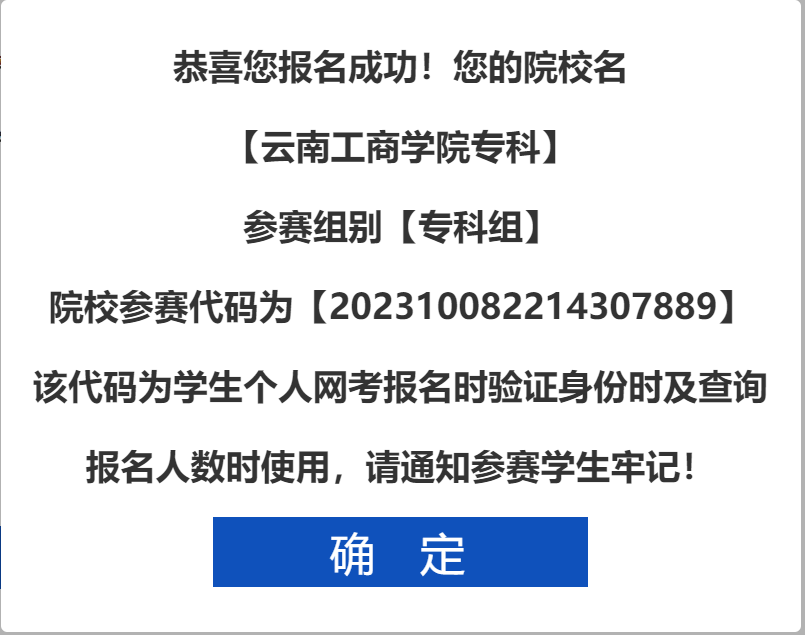 3、我校参赛代码(各校代码唯一,共18位):