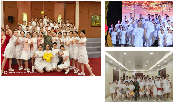 2022级【专升本】护理学13班 何学丽:“实习期间有幸参加了医院举办的歌咏比赛,给我最大的启发是凝聚力、是默契度、是动之以情付之以爱。护士长们的精气神儿无形之中影响着我们,一个人自信的时候,脸上所呈现的状态是特有感染力的,这就是内在的自信爆棚所呈现出来的精神面貌。”