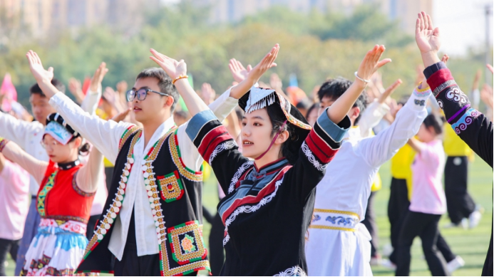 最后,在民族团结的歌舞中运动会开幕式进入尾声。