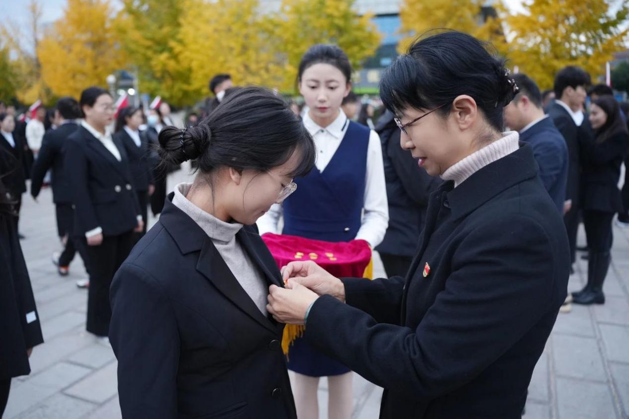 党委委员及嘉宾为预备党员佩戴党员徽章。