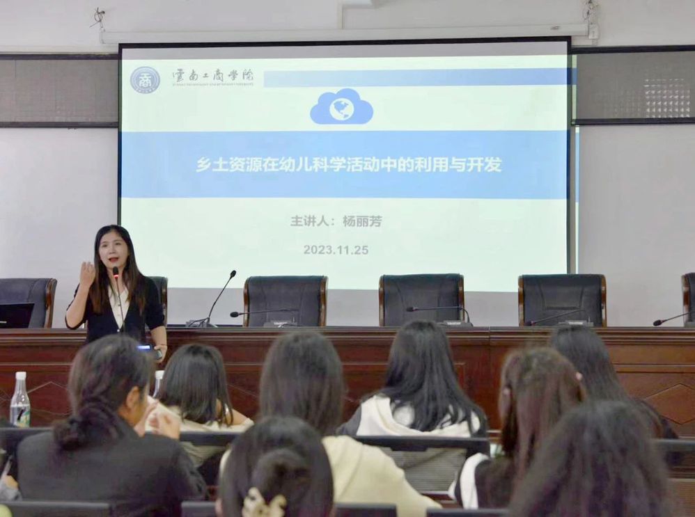 此次培训,教育学院专职教师杨丽芳作为项目负责人,以“乡土资源在幼儿科学活动中的利用与开发”为主题,在分析红河县现有乡土资源的基础上,提出本土化幼儿科学活动内容设计策略。