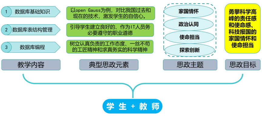 引导学生积极参与思政。以华为openGauss为契机,让学生深入了解华为在计算机技术方面的发展历程、当前在各个领域的领先技术以及未来智能链接革命,让他们从华为的发展历程中领悟新时代科技创新引领、支撑高质量发展的核心作用,有力推进了思政与课程深度融合,让学生融入课堂、认可思政,激发爱国情怀和学习积极性。