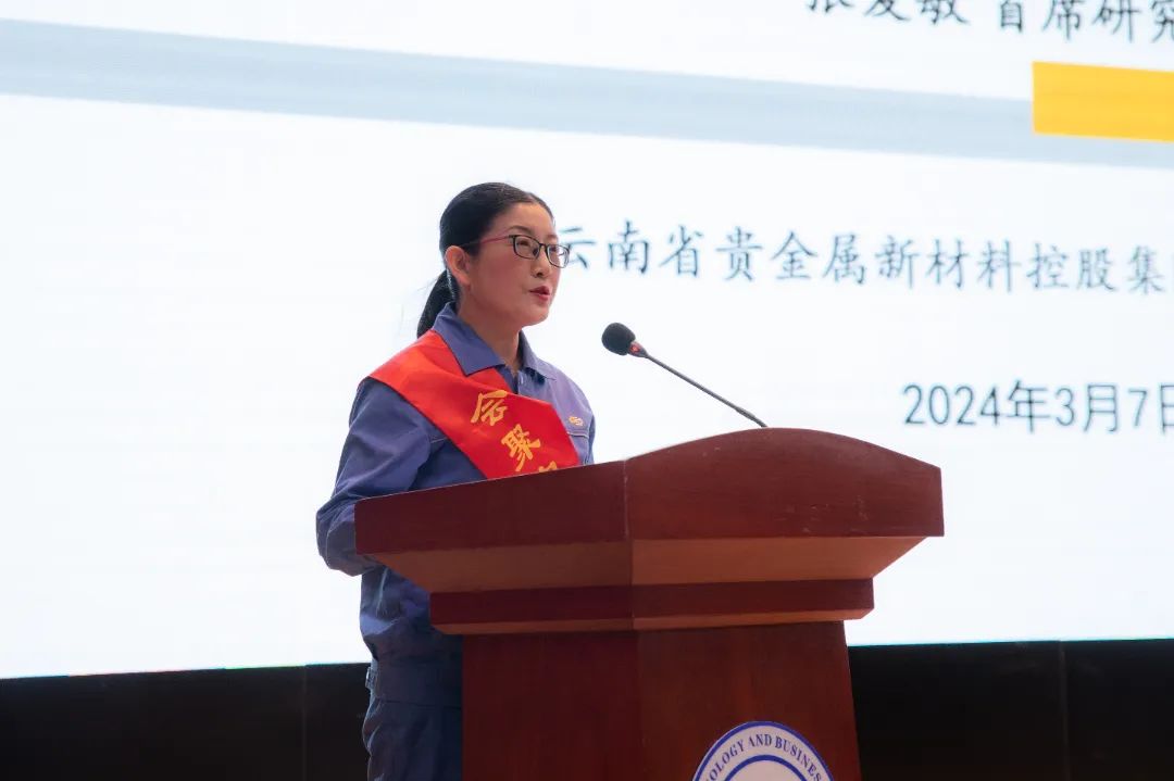 云南省贵金属新材料控股集团股份有限公司材料基因工程首席研究员张爱敏以《柔肩挑重担 勇当追梦人》为主题宣讲。