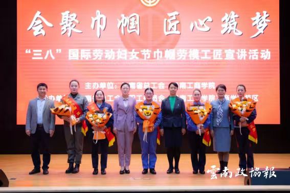 活动现场有5名巾帼劳模工匠进行了宣讲,她们饱含深情地分享了敬业奉献、担当作为、拼搏奋斗、创新创造的感人故事;另外还有7名巾帼劳模进行了书面讲述。她们的讲述中,有对党的二十大精神的感悟,有践行劳模精神、劳动精神、工匠精神的执着,有建设云南高质量跨越式发展的决心,有对组织的感恩和家人的牵挂,具有很强的典型性和代表性,充分展示出新时代中国女性自强不息、奋发有为的动人风采,用实际行动诠释了“执着专注,精益求精,一丝不苟,追求卓越”的工匠精神。广大师生深受鼓舞和启发,学生代表向巾帼劳模工匠献花,并纷纷表示将以她们为榜样,刻苦钻研、奋勇前进,争做劳动先锋、时代新人,在全面建设社会主义现代化国家的火热实践中贡献青春力量。