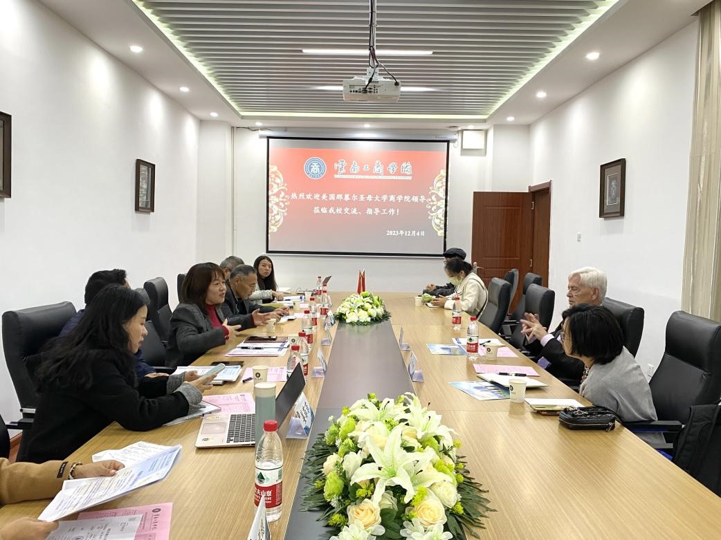 2023年12月4日上午,美国那慕尔圣母大学商业与管理学院院长Dr. John Veitch及Torus Education中国区市场总监李滢女士到访我校,马晓红副校长在图书馆506会议室热情会见了来宾。经济与管理学院院长刘明玺、文法学院院长兼国际交流与合作处处长祁雄、国际交流与合作处处长助理何燕芳、国际交流与合作处特聘专家蒲甦、国际交流与合作处专员李亚稳及文法学院英语系教师姜菲菲、何佳蔓陪同参会。