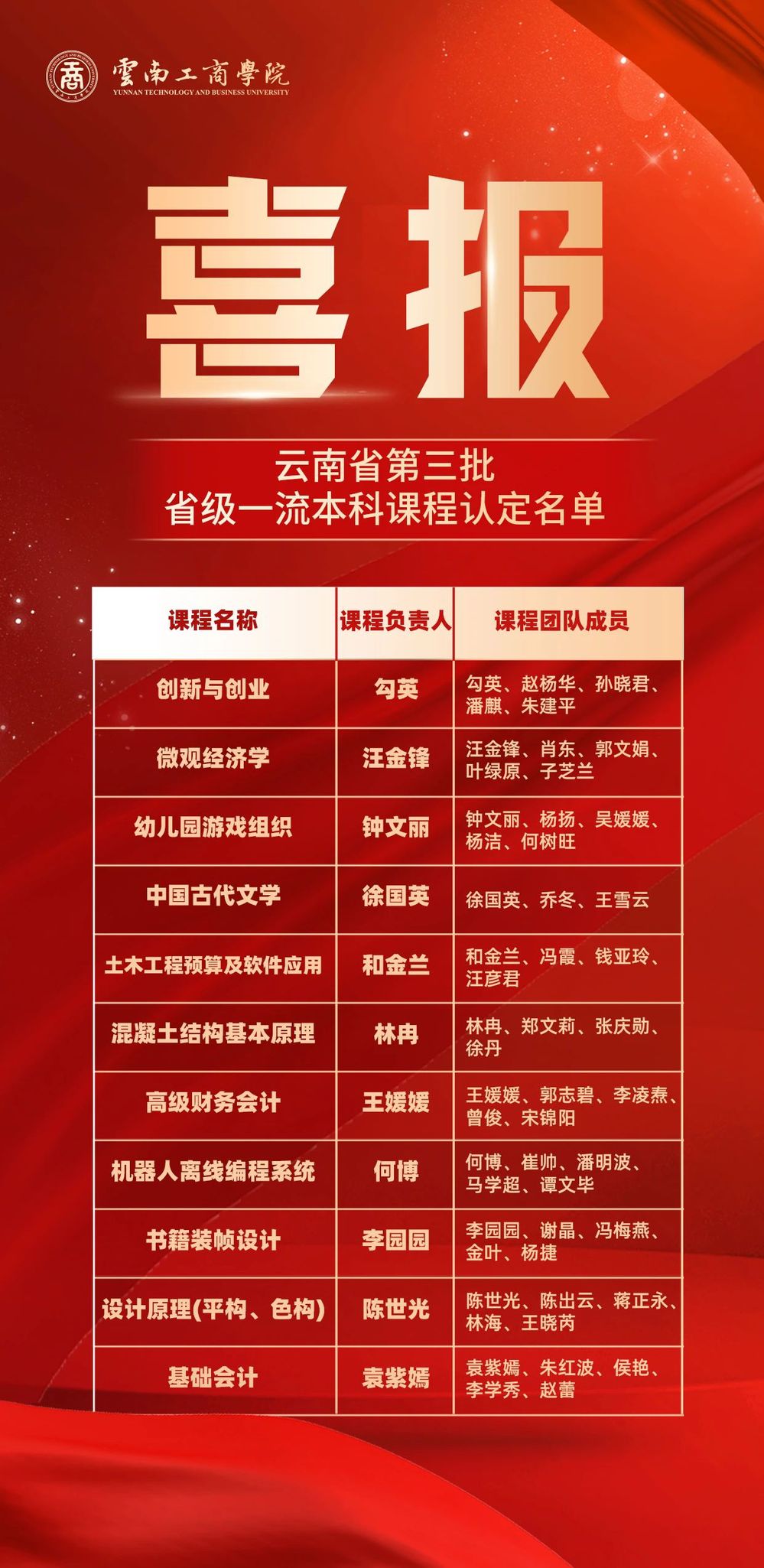 近日,根据《云南省教育厅关于第三批省级一流本科课程拟认定名单的公示》,ky开元集团共计11门课程被认定为省级一流本科课程。其中社会实践一流课程1门,线上线下混合式一流课程2门,线下一流课程8门。同时有4门课程(《微观经济学》《机器人离线编程系统》《创新与创业》《高级财务会计》)拟推荐申报国家级一流本科课程。
