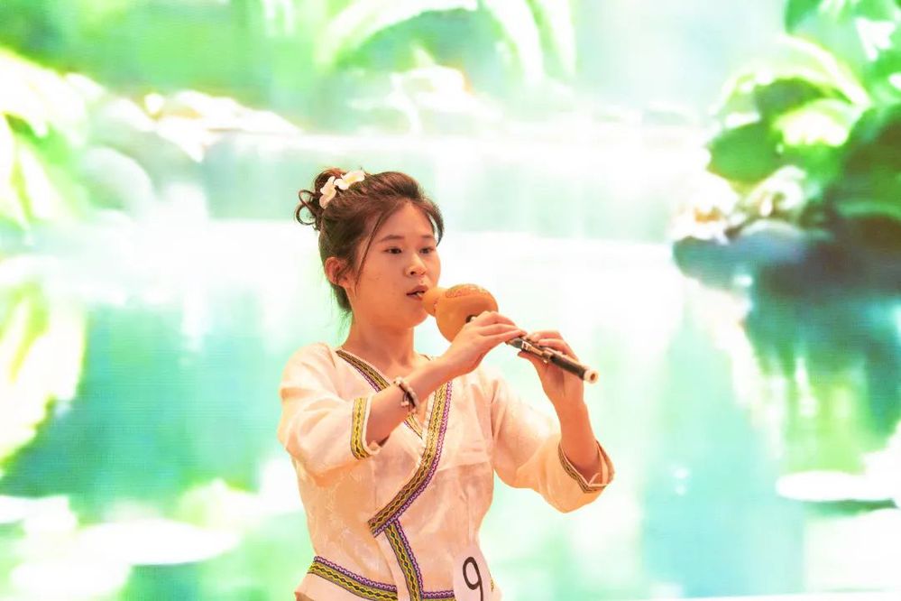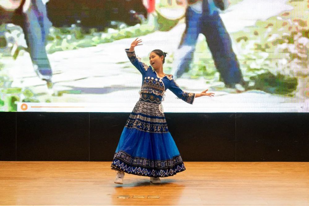 随后,初赛胜出的13位选手依次按照比赛流程开始全英文演讲和相关才艺展示。选手们多才多艺,有吹葫芦丝、唱歌、书法展示,跳民族舞、华尔兹等将才艺展现得淋漓尽致,获得评委和观众的高度肯定,现场氛围热烈而隆重。