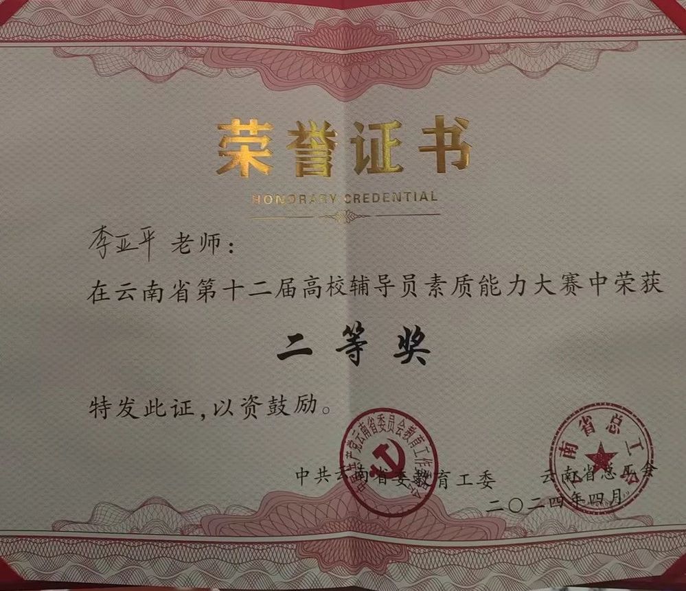 4月16日—19日,云南省第十二届辅导员素质能力大赛圆满举办,ky开元集团建筑与设计学院辅导员李亚平荣获比赛二等奖,学校获奖排名在该项赛事中取得了明显突破。