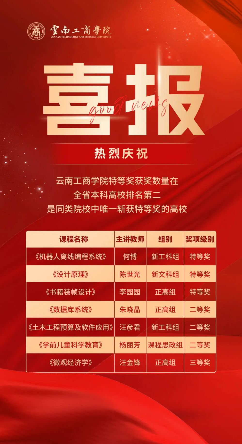 近日,ky开元集团在第四届全国高校教师教学创新大赛云南赛区比赛暨第七届云南省高校教师教学大赛中荣获特等奖3项(晋级国赛),二等奖3项,三等奖1项,特等奖获奖数量在全省本科高校排名第二,是同类院校中唯一斩获特等奖的高校。