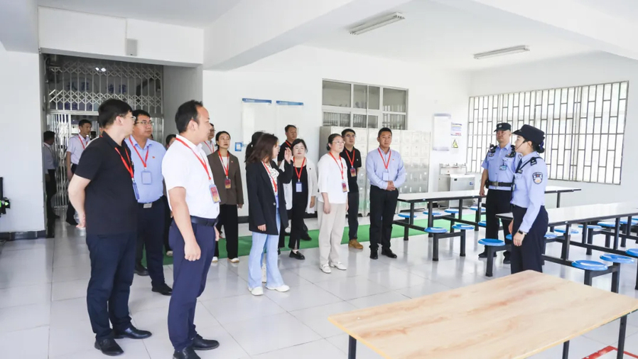 在工作人员的引导下,学校全体管理干部接受了严格的安全检查,先后参观了监舍、罪犯劳动改造车间等生活生产区域,近距离目睹了服刑人员的日常生活及劳动教育改造情况和高墙电网内的铁窗生活,深刻感受到“一墙之隔两世界,一念之差两人生”的巨大反差,接受了最直观的警示教育。