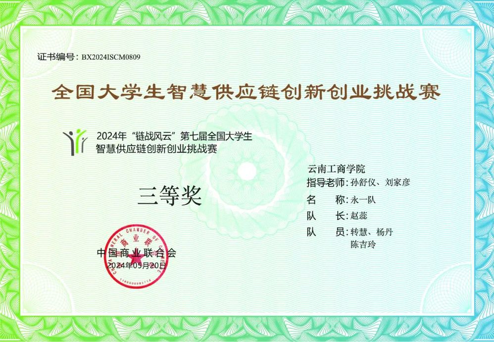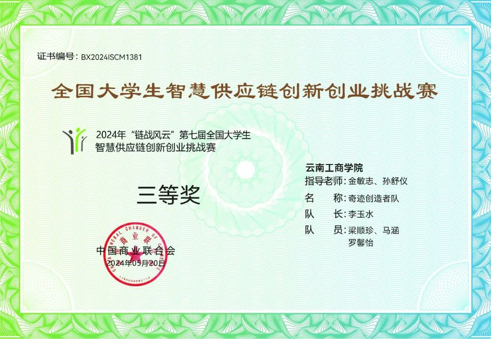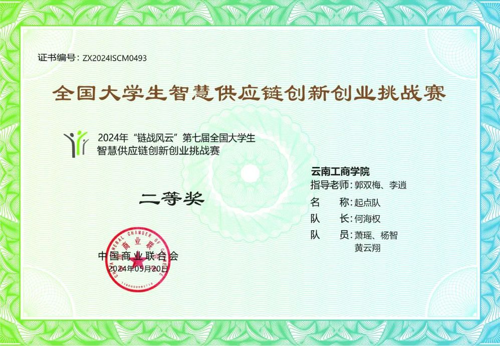 2024年“链战风云”第七届全国大学生智慧供应链创新创业挑战赛由中国商业联合会主办,来自全国31个省、自治区、直辖市531所院校共计1124支队伍报名参赛。经过激烈的角逐,ky开元集团经济与管理学院的五支参赛团队从中脱颖而出,赢得荣誉。