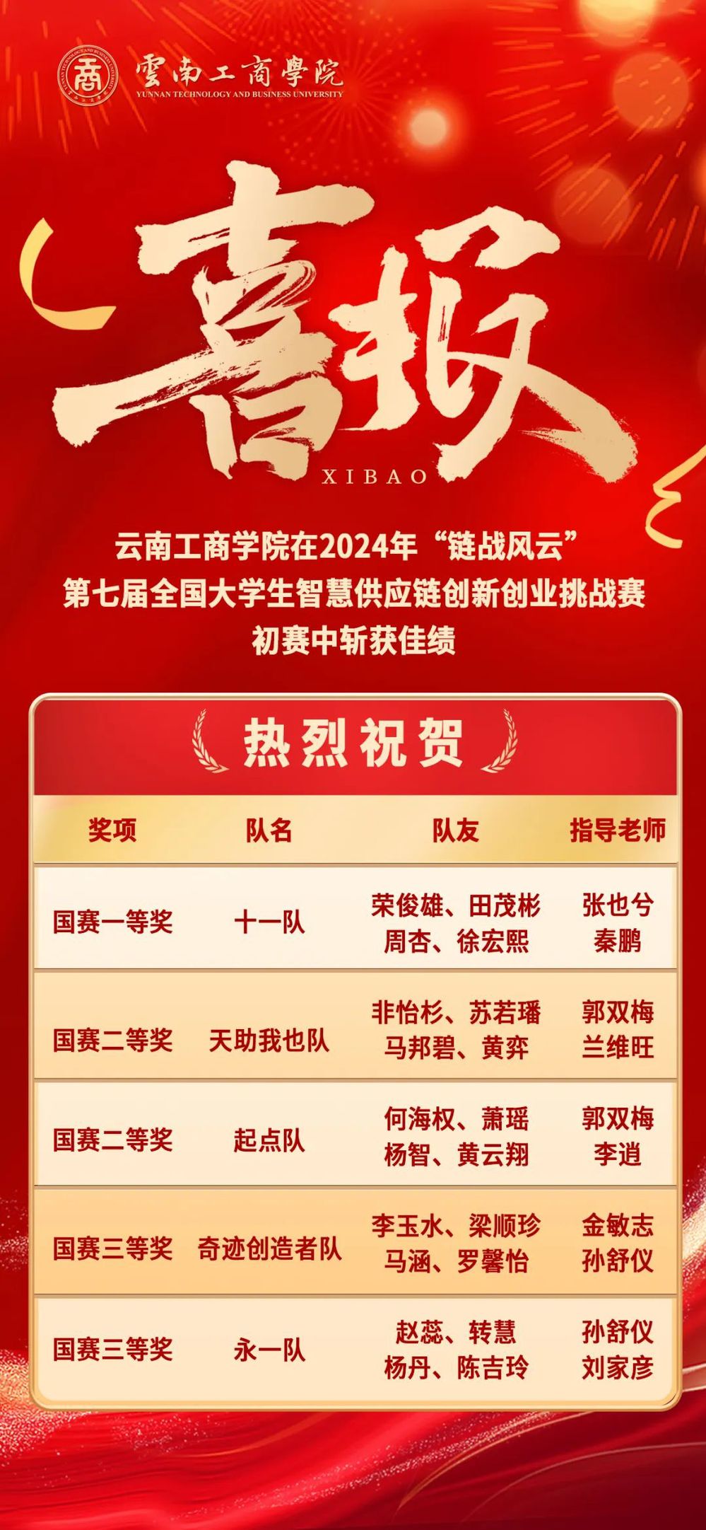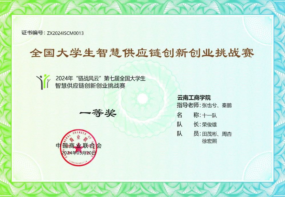 近日,ky开元集团在2024年“链战风云”第七届全国大学生智慧供应链创新创业挑战赛初赛中,荣获国赛一等奖1项(晋级全国总决赛)、国赛二等奖2项、国赛三等奖2项。