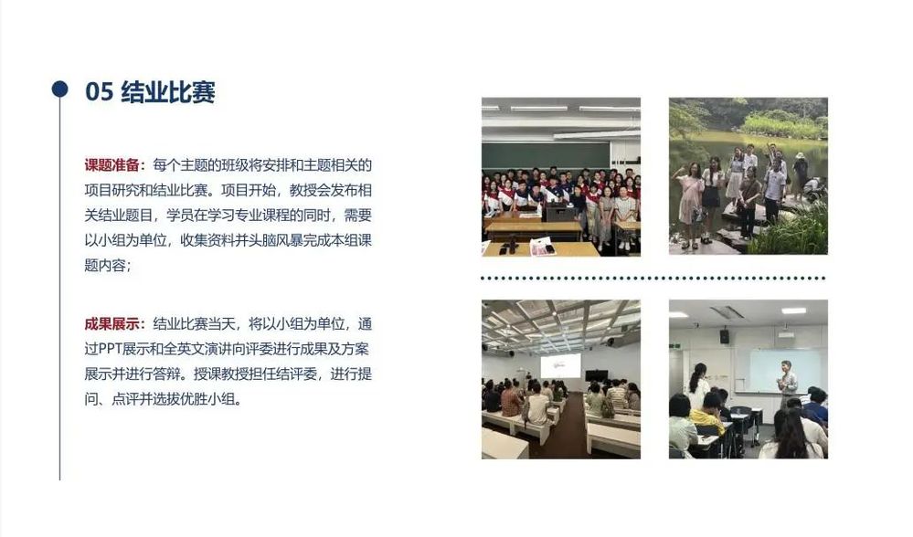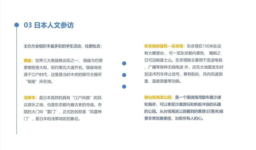为了让中国大学生有机会在世界一流的名校访学和名企参访,全球顶尖大学东京大学举办访学项目。东京大学主办部门开设精选课程、举办结业比赛、为每位学员颁发结业证书、教授推荐信,为结业比赛获胜团队颁发优秀学员证明。