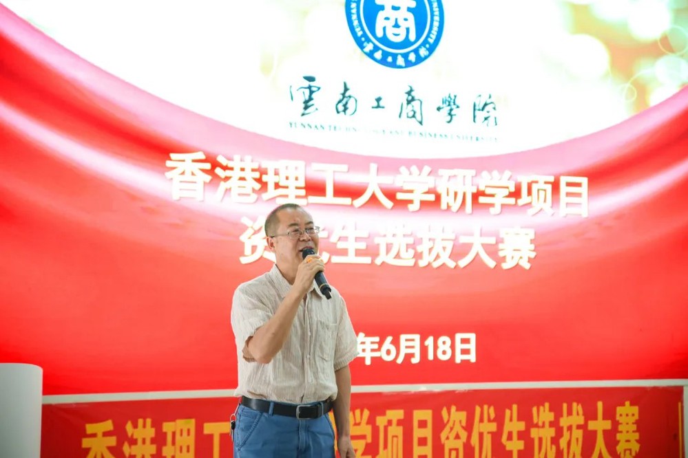 何燕芳作赛前致辞,她表示,此次香港研学之行,不仅是一次学术的盛宴,更是一次人生的历练。“我们期望能遴选出综合素质优秀、具有跨文化交际能力及广阔视野的优秀同学,在香港理工大学的研学征程中展现云工商学子的风采,挖掘潜能,在学与游中收获宝贵的学术硕果与难忘的人生体验。”