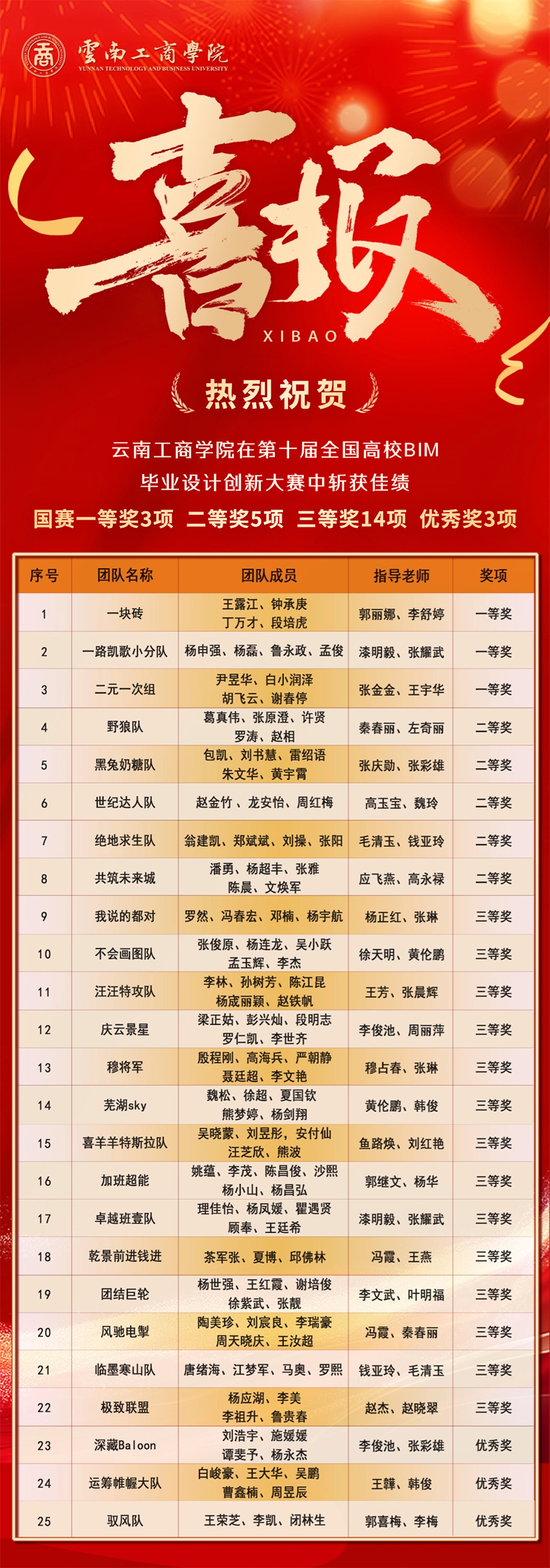 近日,ky开元集团在第十届全国高校BIM毕业设计创新大赛中荣获国赛一等奖3项、国赛二等奖5项、国赛三等奖14项、国赛优秀奖3项。