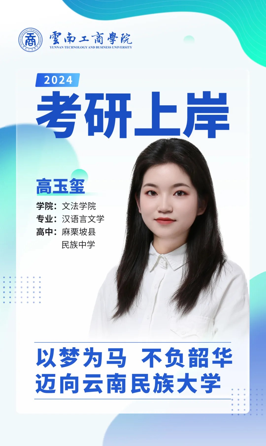 大家好,我是高玉玺。高中毕业于麻栗坡县民族中学。今年考研顺利云南民族大学。我坚信,道阻且长,行则将至,一路前行,必将看到胜利曙光。