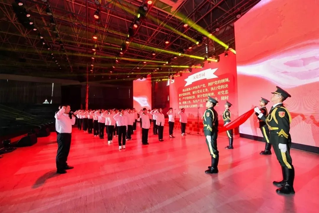 会上,参会领导为新加入党组织的275名新党员佩戴党员徽章,并举行新党员宣誓、老党员重温入党誓词仪式。