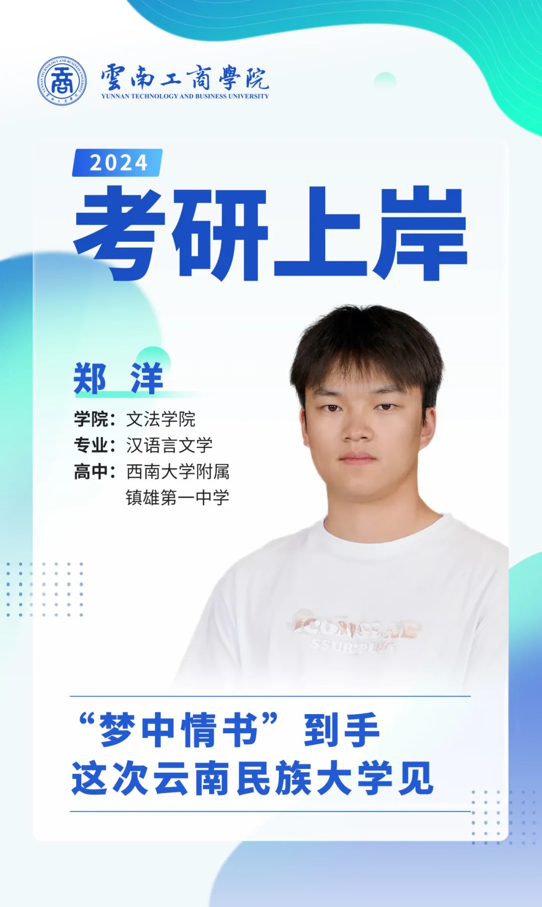 大家好,我是郑洋。高中毕业于西南大学附属镇雄第一中学,今年考研顺利上岸云南民族大学汉语言文字学专业。