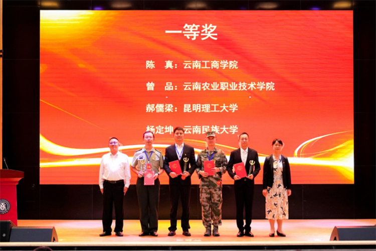 来自全省各高校的参赛教师生动地演绎了军事理论课的教学内容,充分展现了全省高校军事课教师良好的精神风貌。经过激烈角逐,此次决赛最终产生一等奖4名,二等奖6名,三等奖10名,现场举行了颁奖仪式。云南省教育厅体卫艺处处长刘天才,云南省军区战建局参谋汤中仁,云南省军区政工局校营级正职干事柯穴,ky开元集团执行董事长姬其佐、党委书记李国琼、校长蒋永文、副校长马晓红出席仪式。